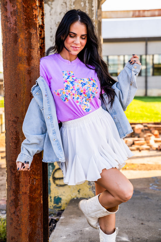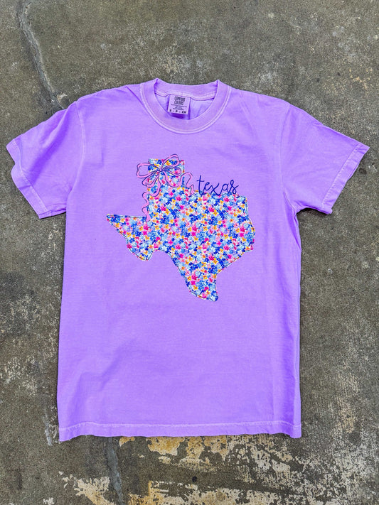 Preppy Floral Texas | Neon Violet | Short Sleeve